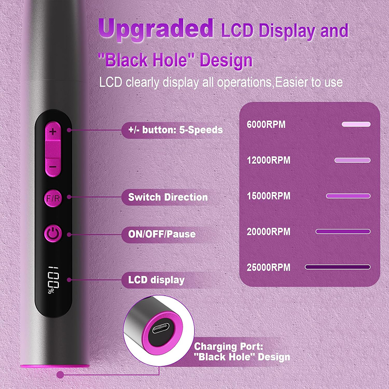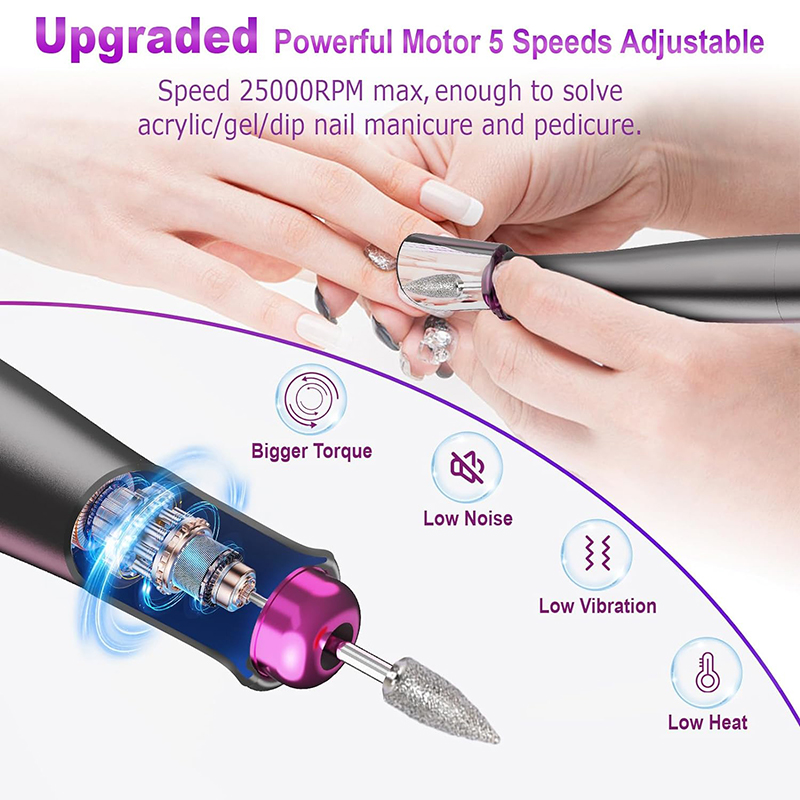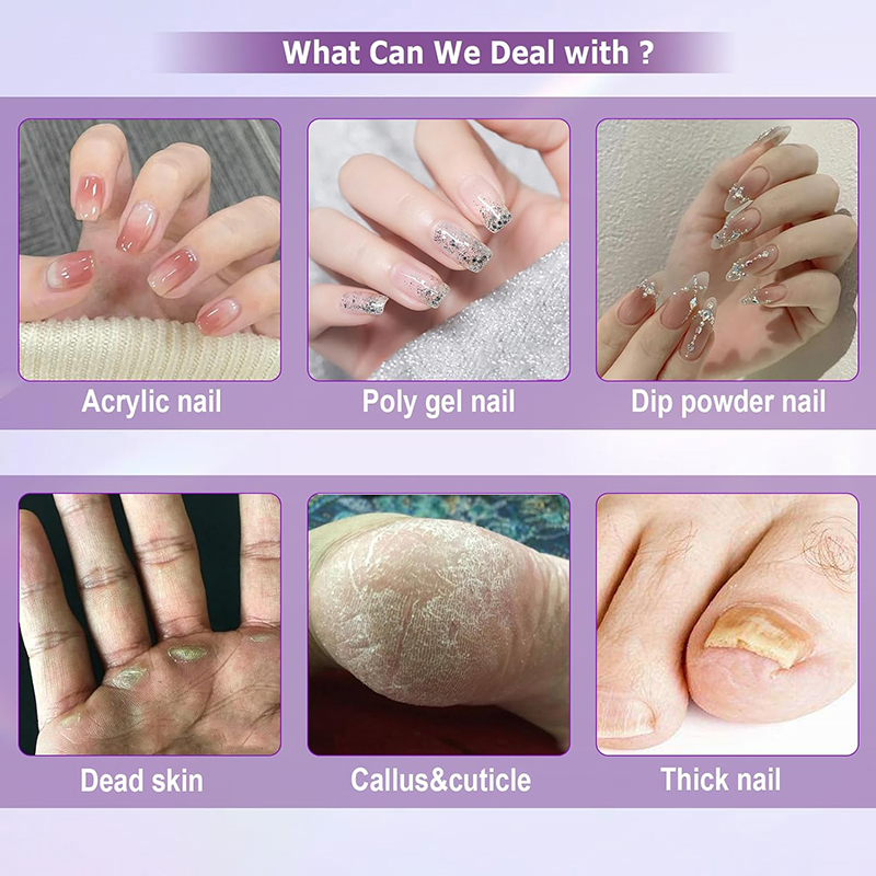 Elektrická vŕtačka na nechty Vylepšený výkonný motor je ideálny pre všetky vaše potreby v oblasti manikúry a pedikúry, vrátane odstraňovania akrylových nechtov, poly gélových nechtov, gélu na chrobáky, nechtových nechtov, nechtovej kožičky, odumretej kože, mozoľov a hrubých nechtov.