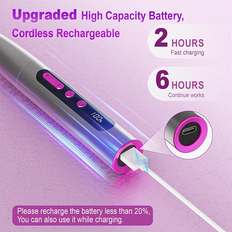 elektrická vŕtačka na nechty Vylepšená vysokokapacitná batéria, 2 hodiny rýchle nabíjanie a 6 hodín Pokračujte v práci. Elektrický pilník na nechty je vhodný pre váš USB napájací adaptér, notebook, mobilné napájanie atď. Ak je výkon akumulátorovej vŕtačky na nechty nižší ako 20 %, môžete ho použiť aj počas nabíjania.