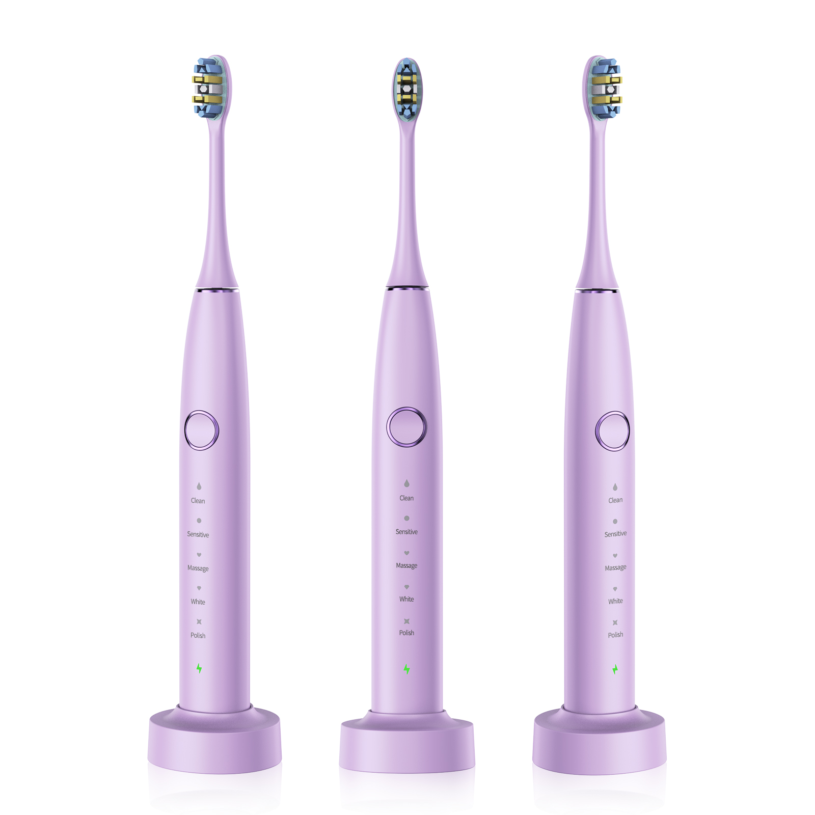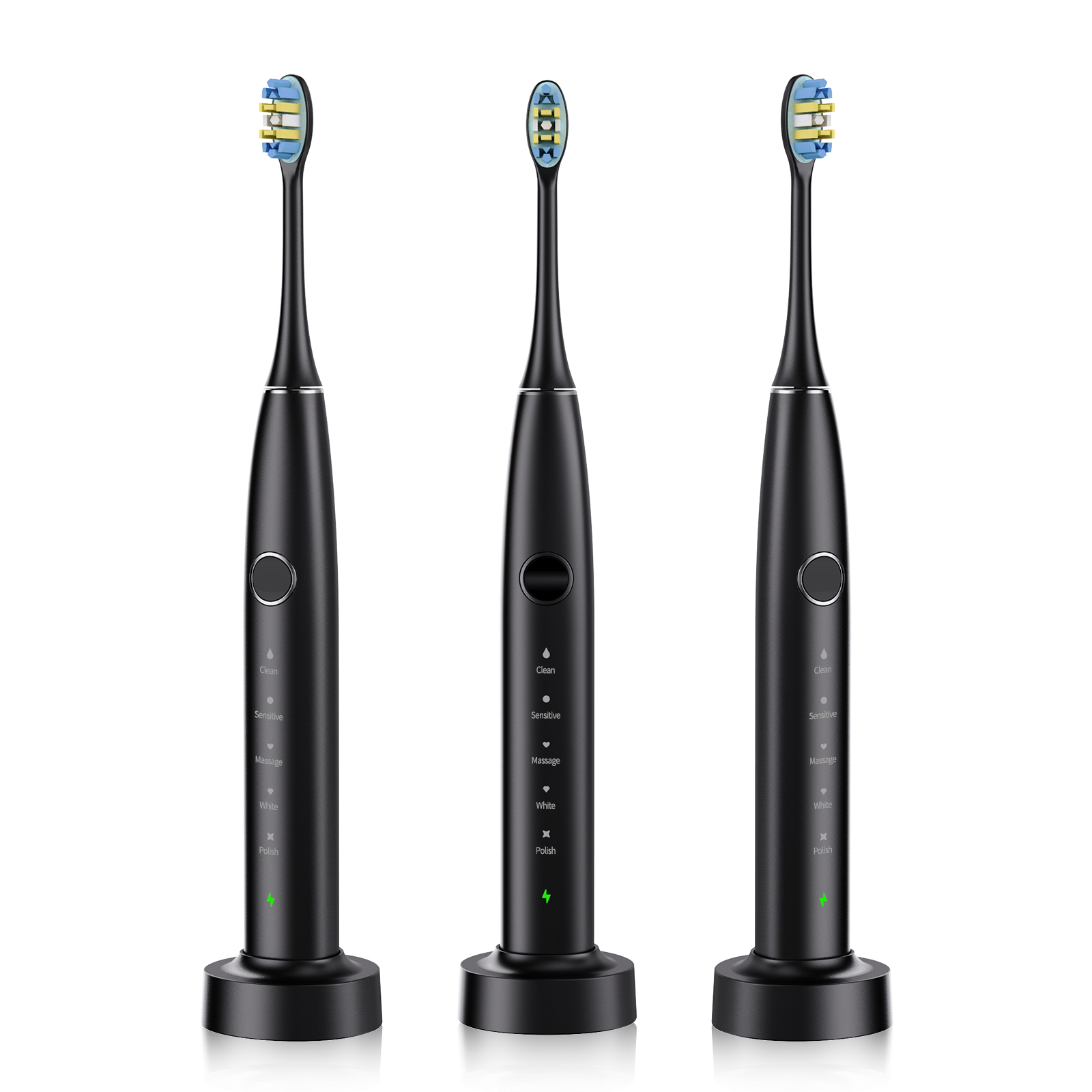 - 5 VYSOKOÚČINNÝCH REŽIMOV ČISTENIA – Čistý (jemný), Biely (silný), Leštiaci (silná inverzná frekvencia), Miernejší (jemná inverzná frekvencia) a Citlivý (jemný), aby vyhovovali rôznym stavom zubov ďasien, takže si môžete vybrať rôzne režimy podľa vašich preferencií a odporúčaní zubného lekára.